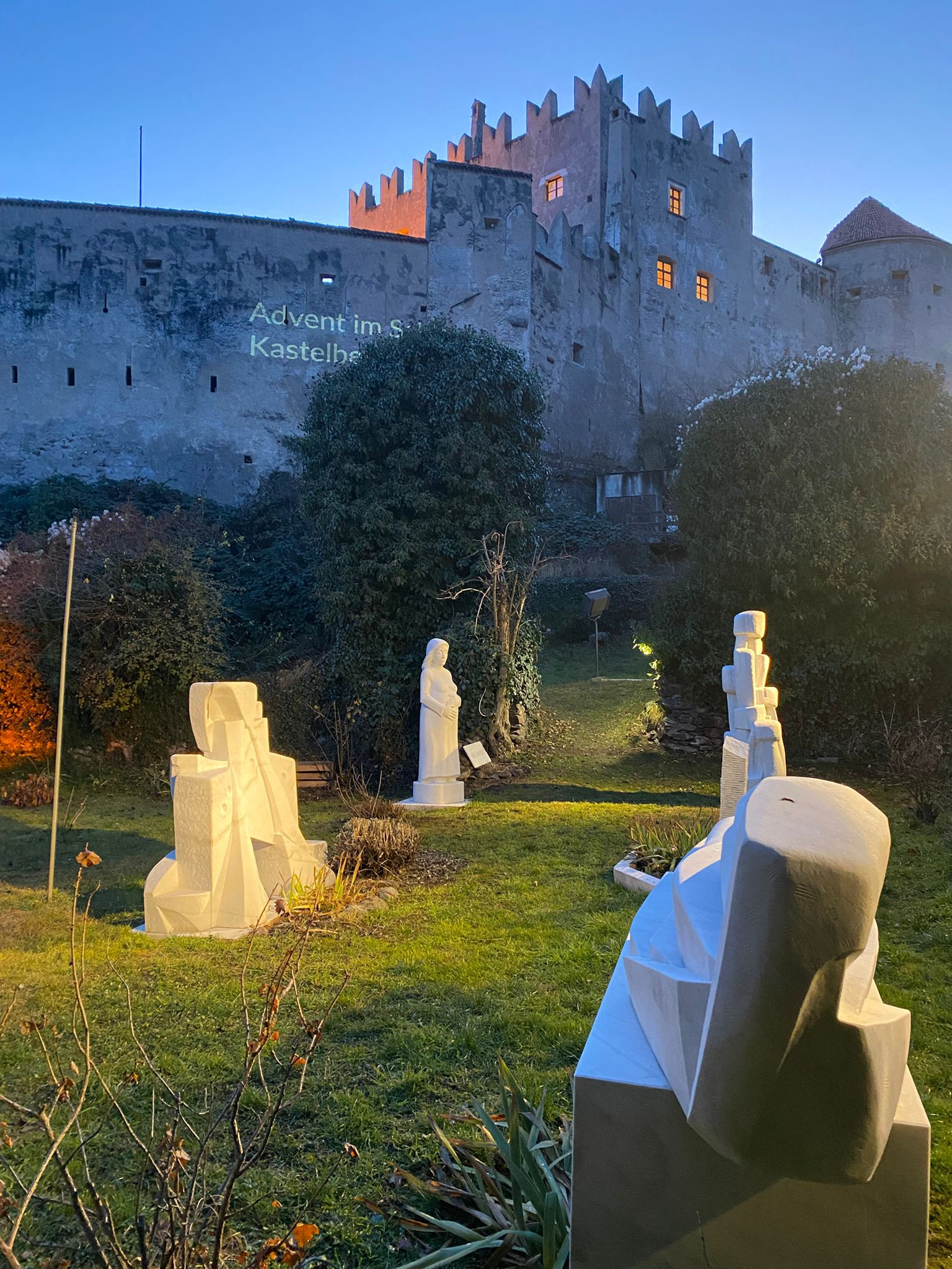 As part of the three-day Advent event ‘Advent at Castelbello Castle’, which takes place from 19 December to 21 December 2025 at Castelbello Castle, the sculptures made of Covelano Marble in the castle gardens of Castelbello Castle will be atmospherically illuminated.
